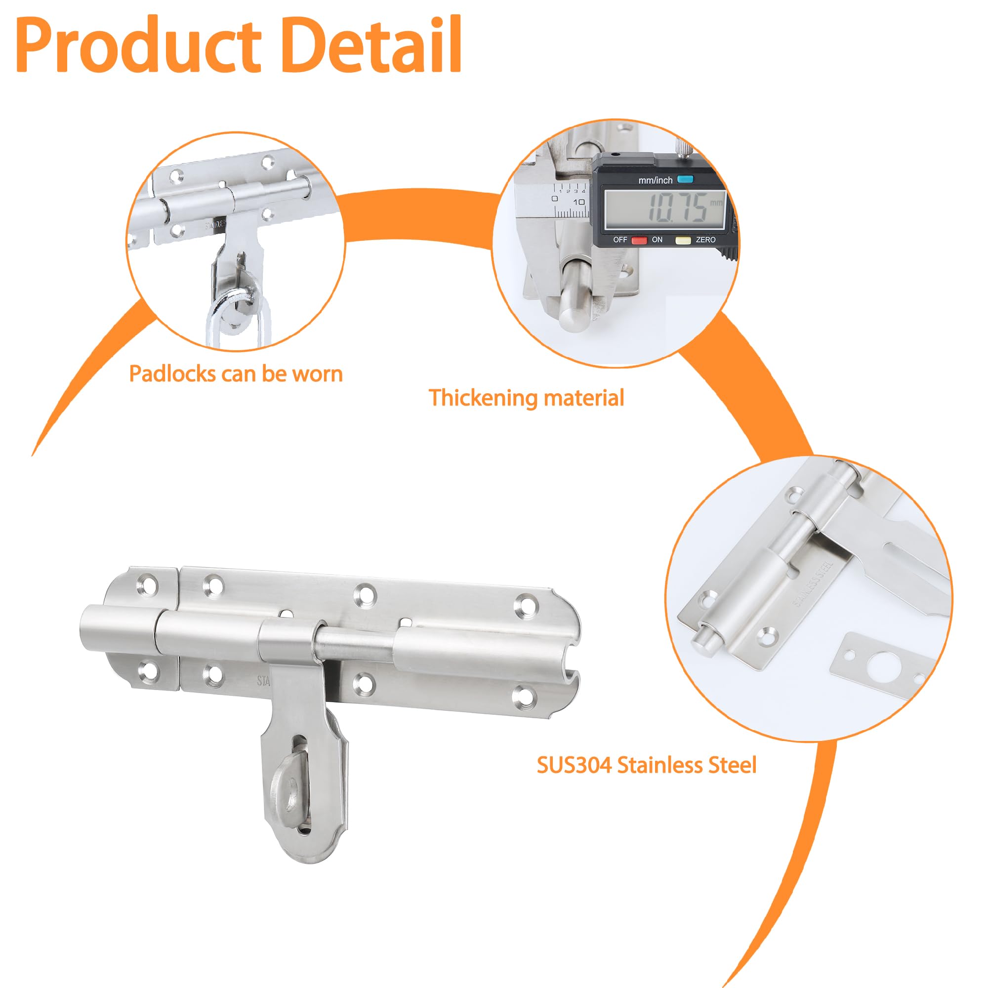 - 【Made of Stainless Steel】The bolt latches constructed from hi-q solid Stainless Steel, Ensuring quality and longevity, Strong and durable, not easy to rust and oxidation