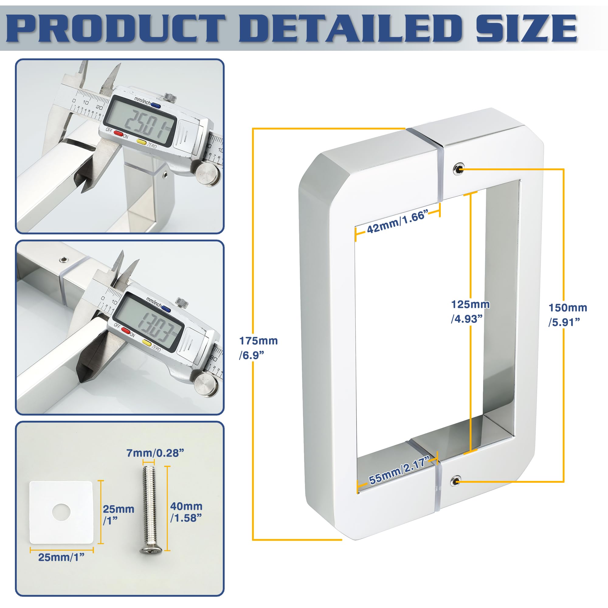 - 【Heavy Duty Thickened Material】The shower glass door handle with thicker square tube handle, which is generous and beautiful appearance, strong and durable, sufficient tensile force ensures long-lasting operation and no deformation.
