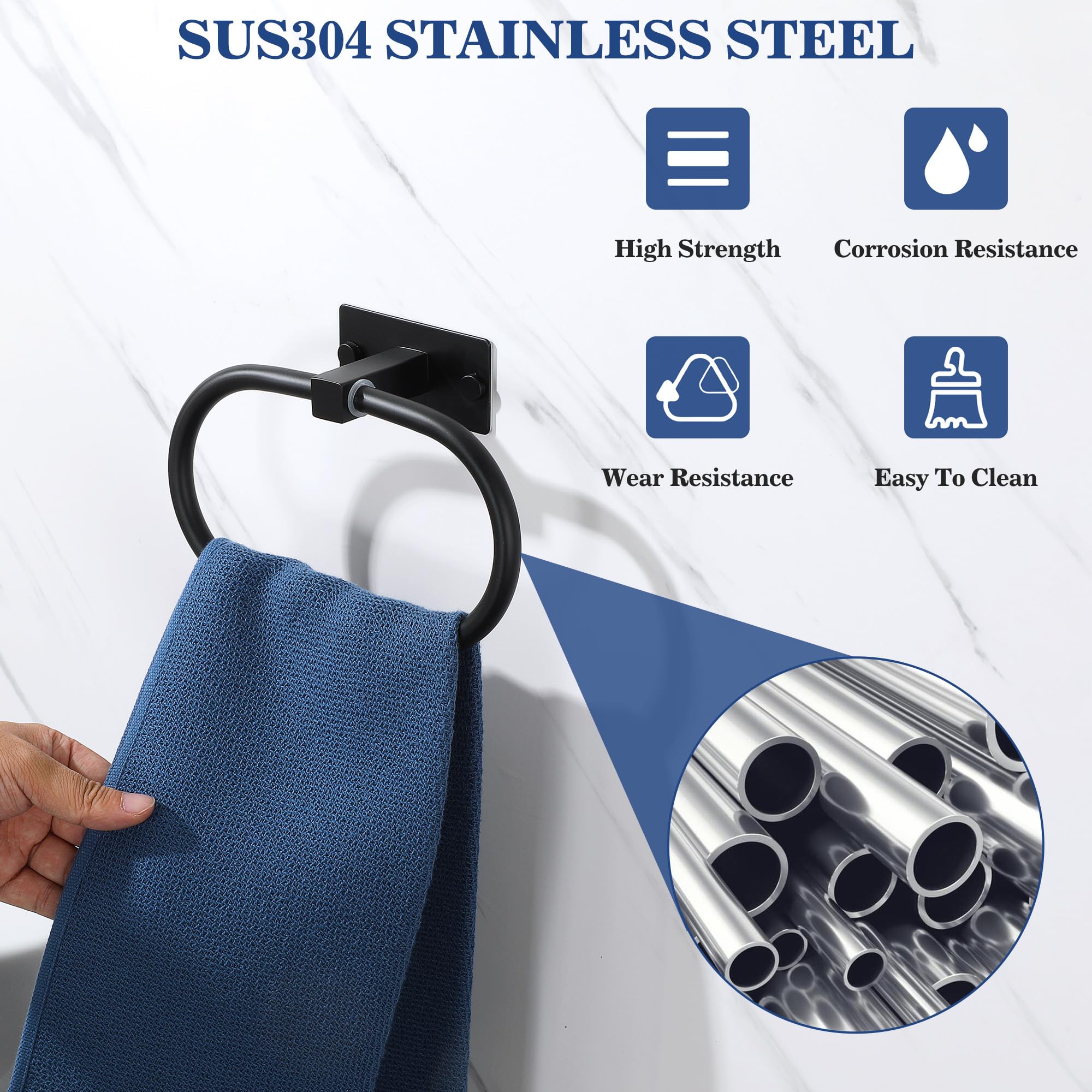 Alise Hand Towel Holder Towel Ring for Bathroom Lavatory Self-Adhesive,SUS304 Stainless Steel Towel Rack Towel Bar Towel Hanger for Walls,Black,Pack of 2